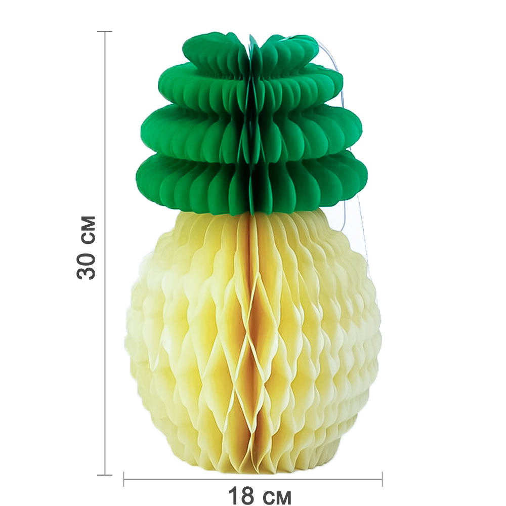 Бумажное украшение "Ананас" 30х18 см — сочный и праздничный элемент для оформления стола, фотозон, витрин и интерьера. Поставляется в сложенном виде, легко раскрывается в пышную объёмную форму.