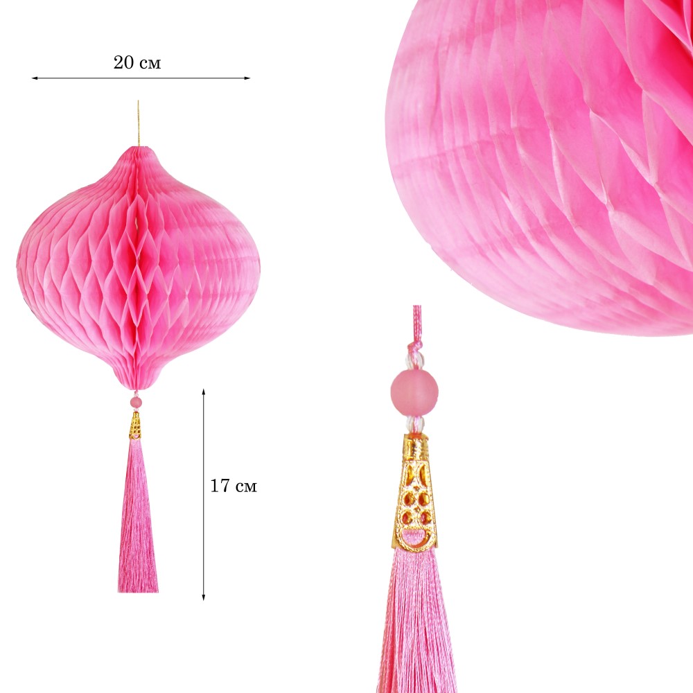 Бумажное украшение Шар-соты с кисточкой 20 см, розовый