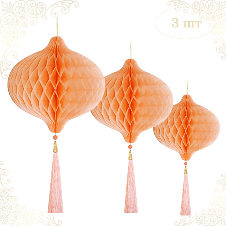 Бумажное украшение Шары-соты с кисточкой НАБОР 3 шт, персиковый