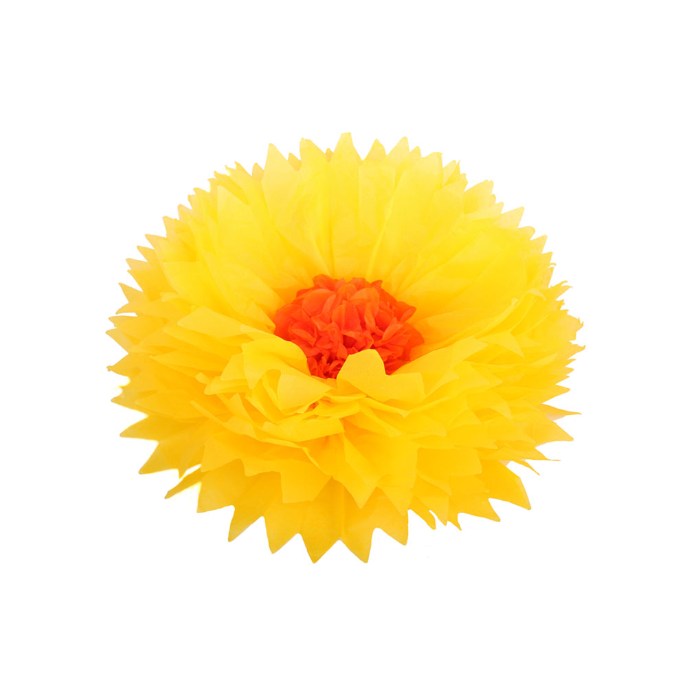 Бумажный цветок 30 см ярко-желтый+оранжевый