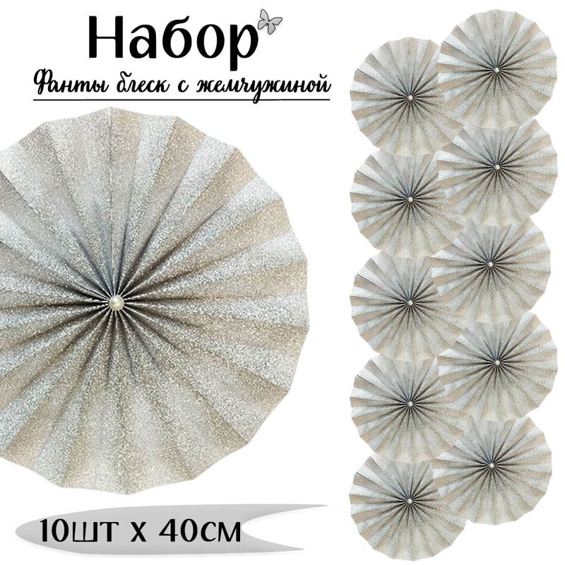 Фанты блеск с жемчужиной НАБОР 10шт х 40см, серебро