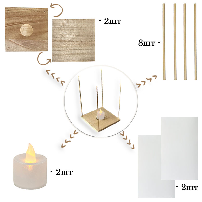 1. Деревянная основа — обеспечивает плавучесть и устойчивость фонарика.