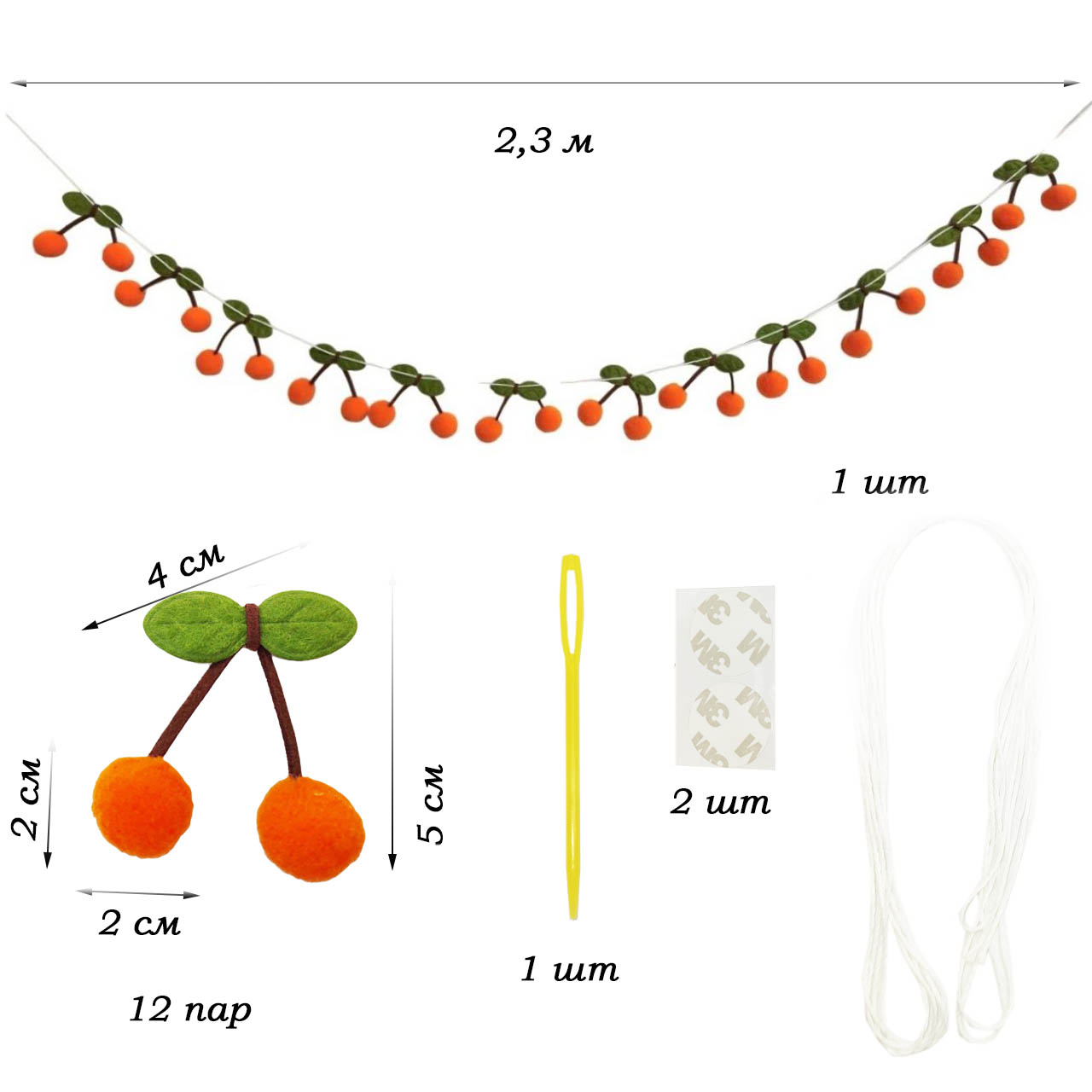 Гирлянда на веревке "Вишенки" 2 см х 24 шт х 2,3 м, "оранжевый" - 1 шт.