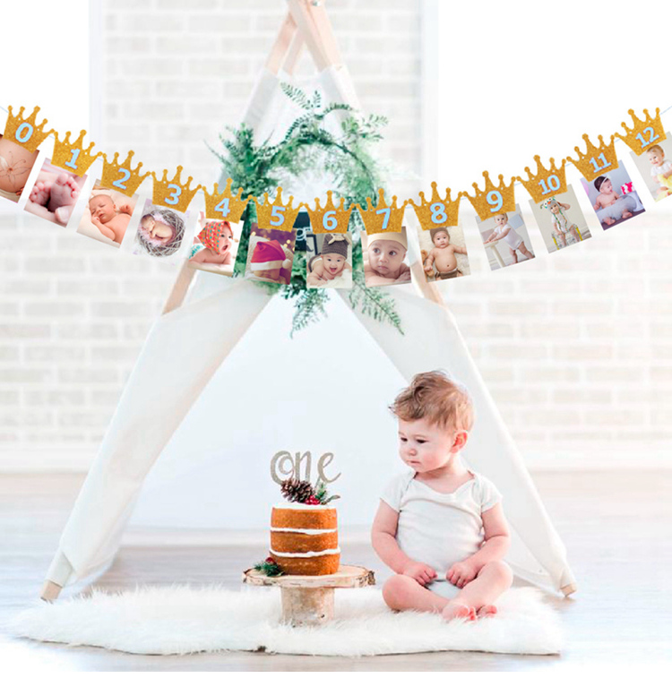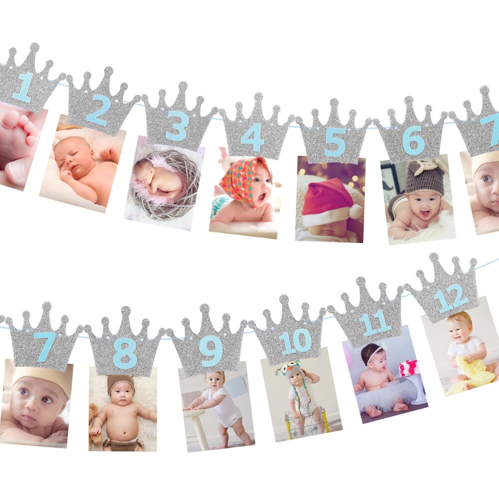 Гирлянда Первый годик, с прищепками для фото 3 м, серебро