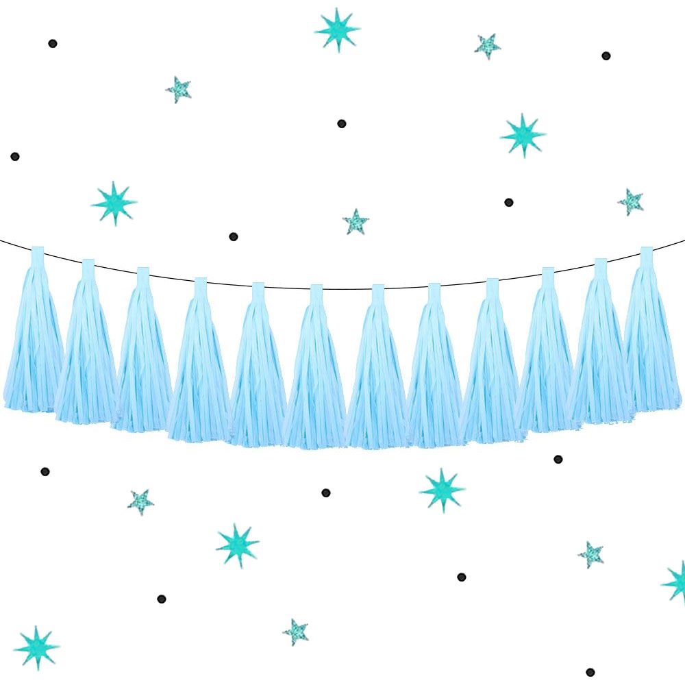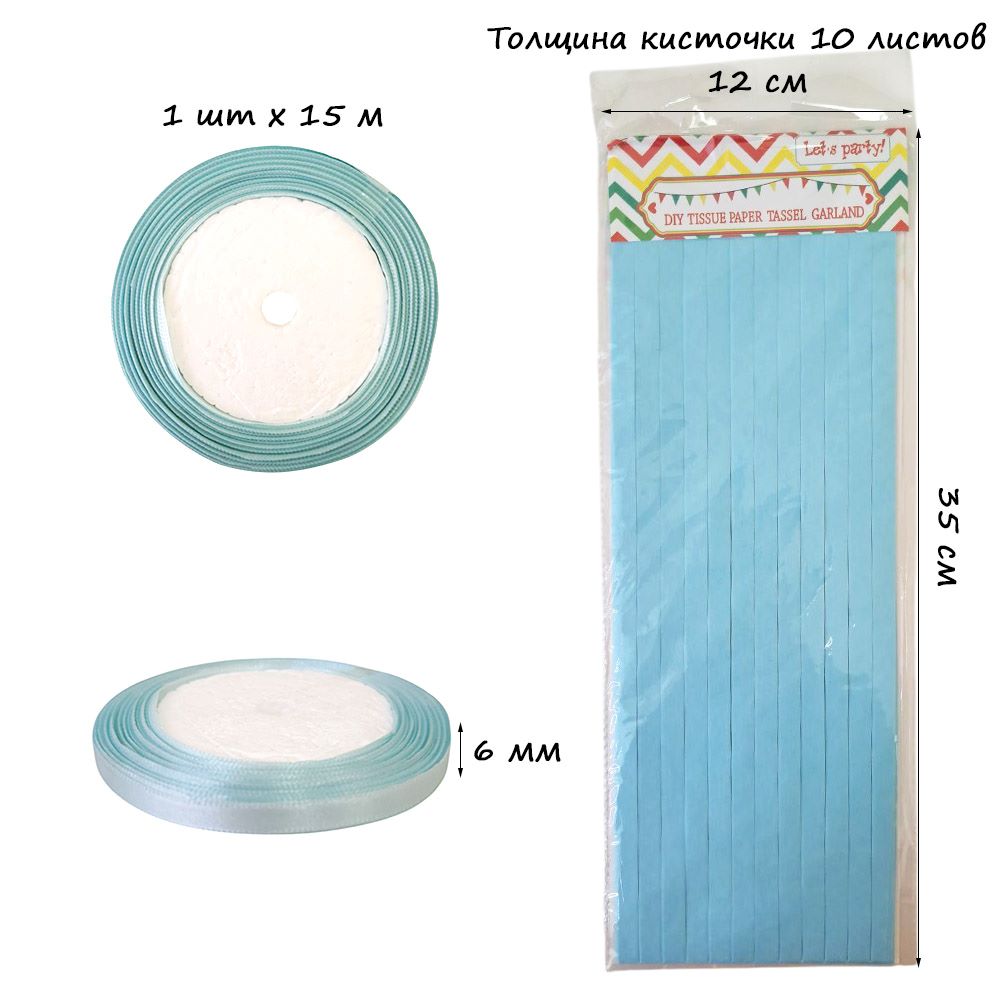 Гирлянда тассел 12 кисточек по 10 листов, голубой