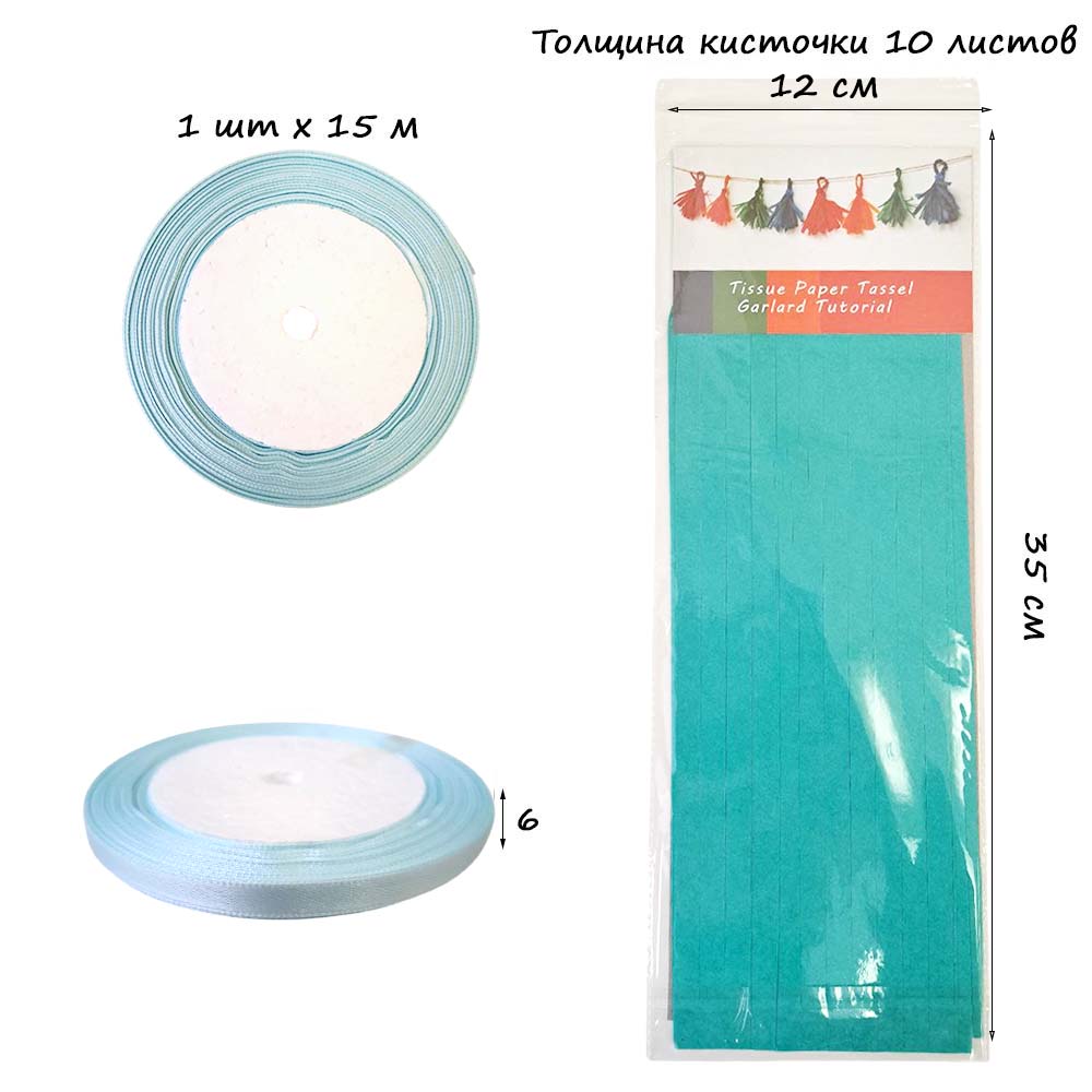 Гирлянда тассел 12 кисточек по 5 листов, изумрудный