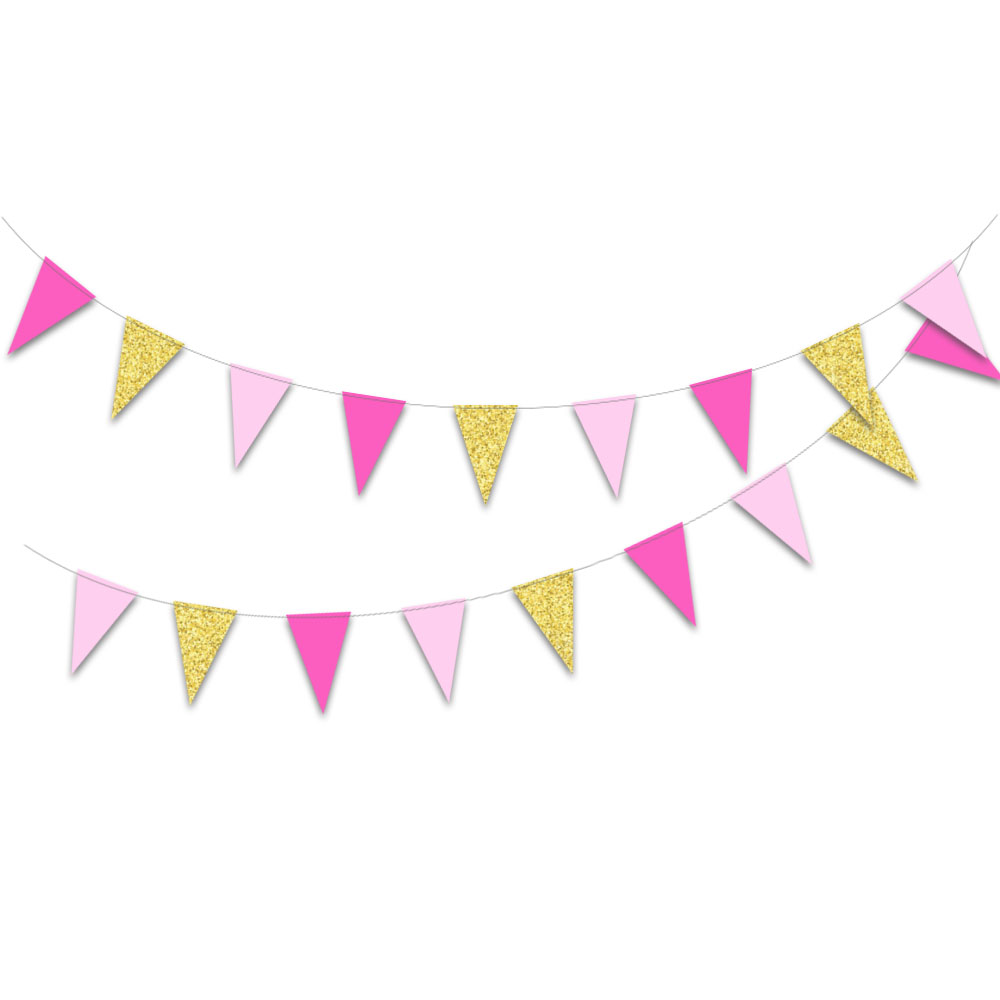 Гирлянда-вымпел 9 х 14 см св.розов.+золото+малин. 4 м