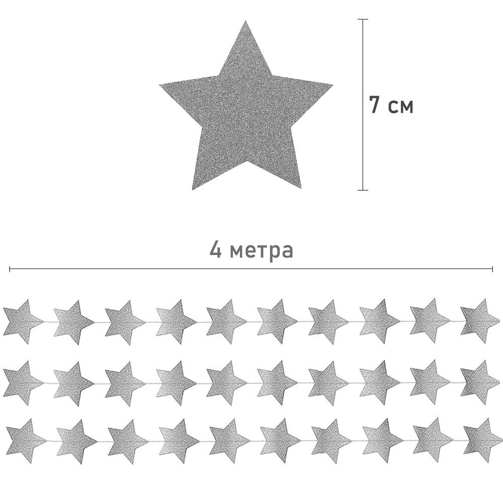 Гирлянда "Звезды" блеск 7 см х 4 м, серебро