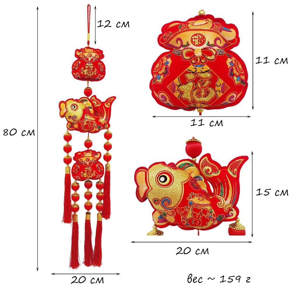 Китайская подвеска 20х80см, Рыбка + Денежные мешки