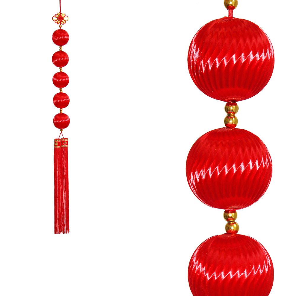Коллекция подвесных шаров в традиционном китайском стиле. Легкие пластиковые шары плотно обвитые шелковыми нитями насыщенного красного цвета, создающими эффект мерцающего перелива при свете.