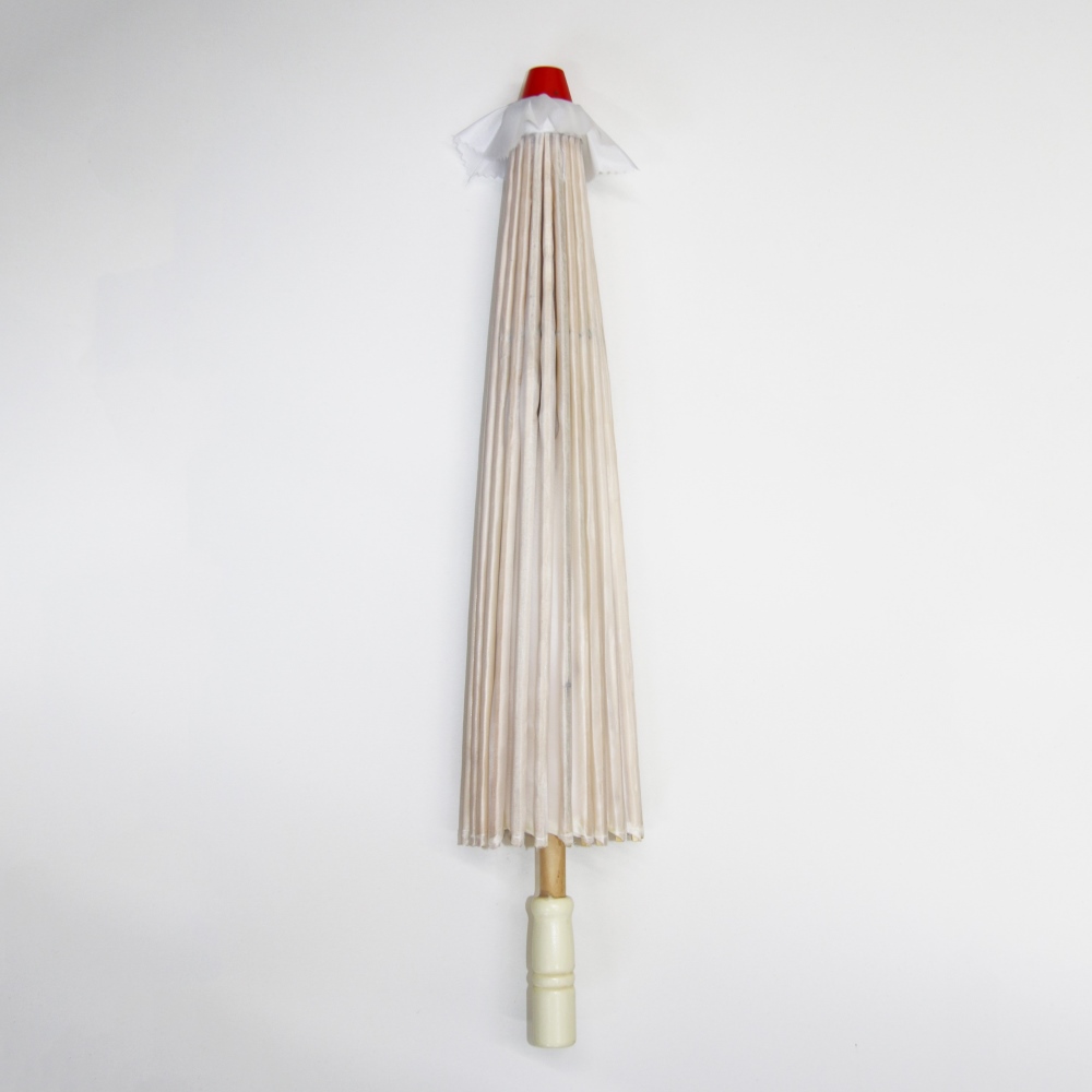 Каркас зонтика выполнен из дерева,купол зонта изготовлен из водоотталкивающего материала,который не пропускает воду.