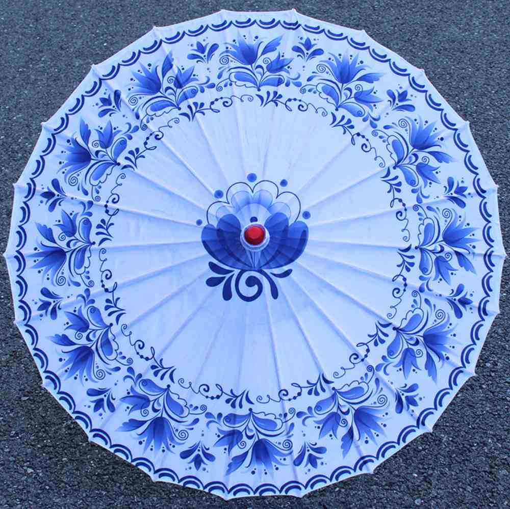 Китайские тканевые зонтики Гжель 82х54см, №7