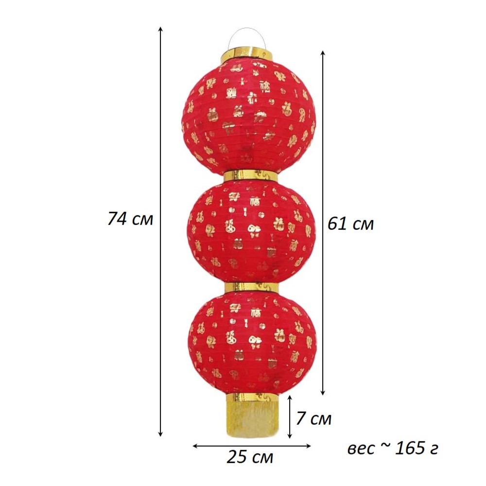Китайский фонарь Круглый с надписью, 3 яруса 25см