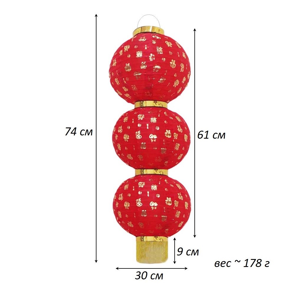 Китайский фонарь Круглый с надписью, 3 яруса 30см