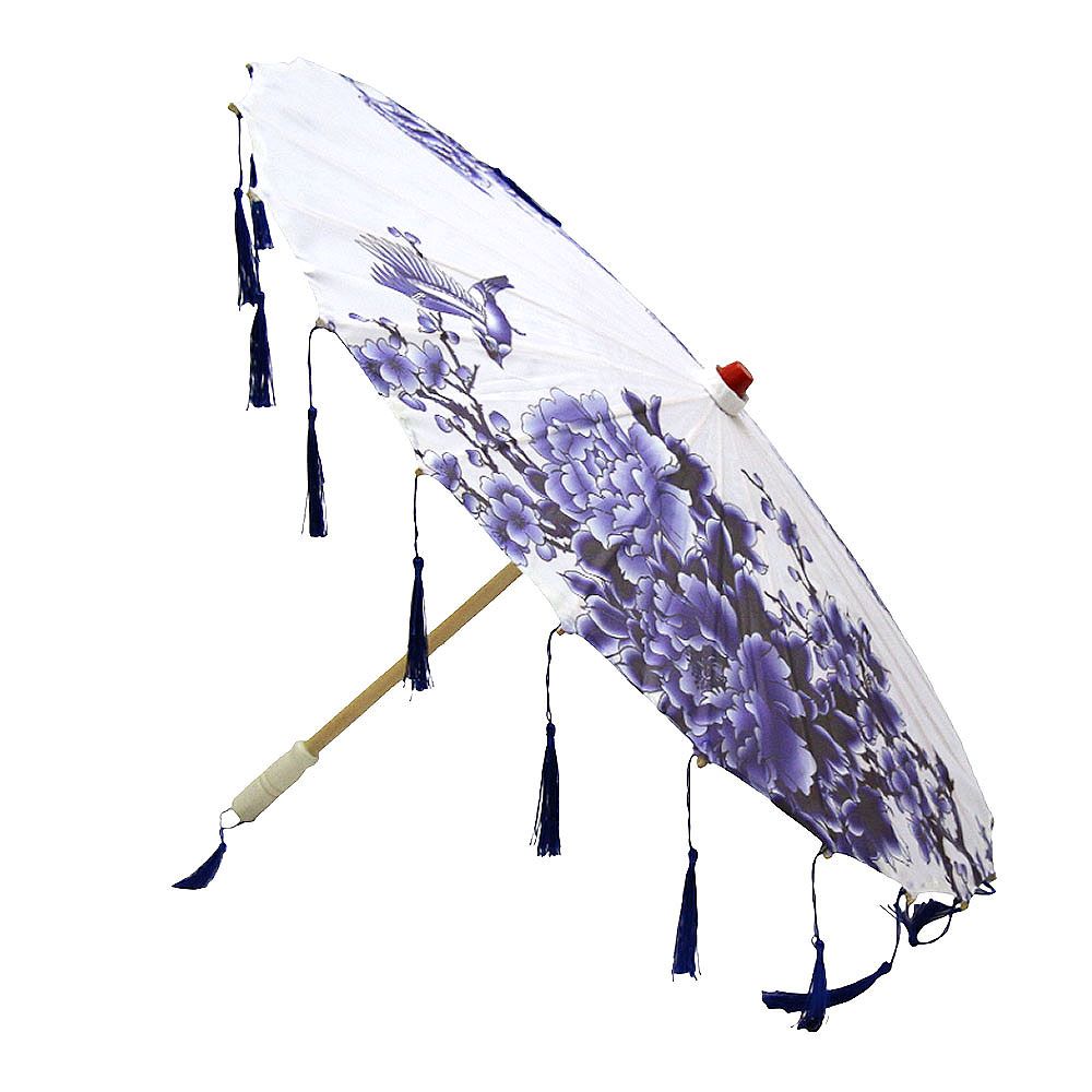 Китайский тканевый зонтик цветочный с кисточками 82х54см, №3