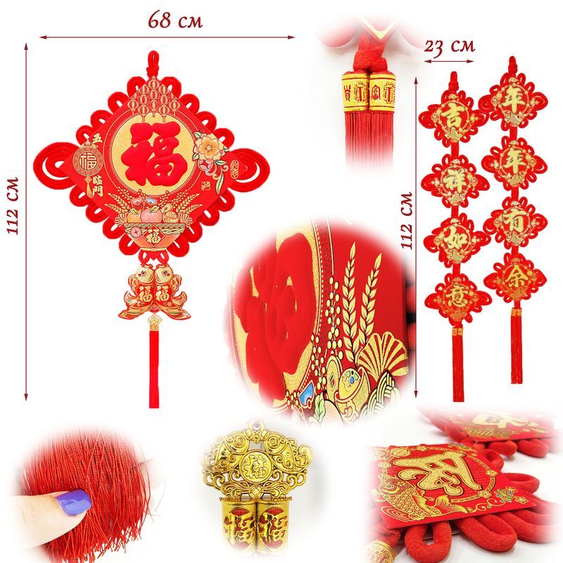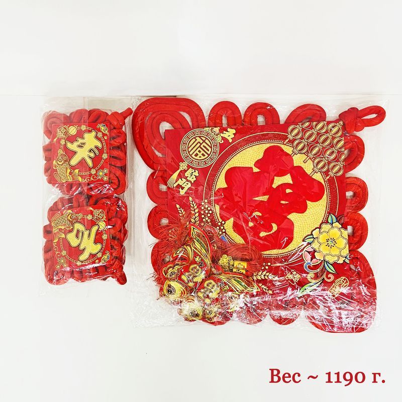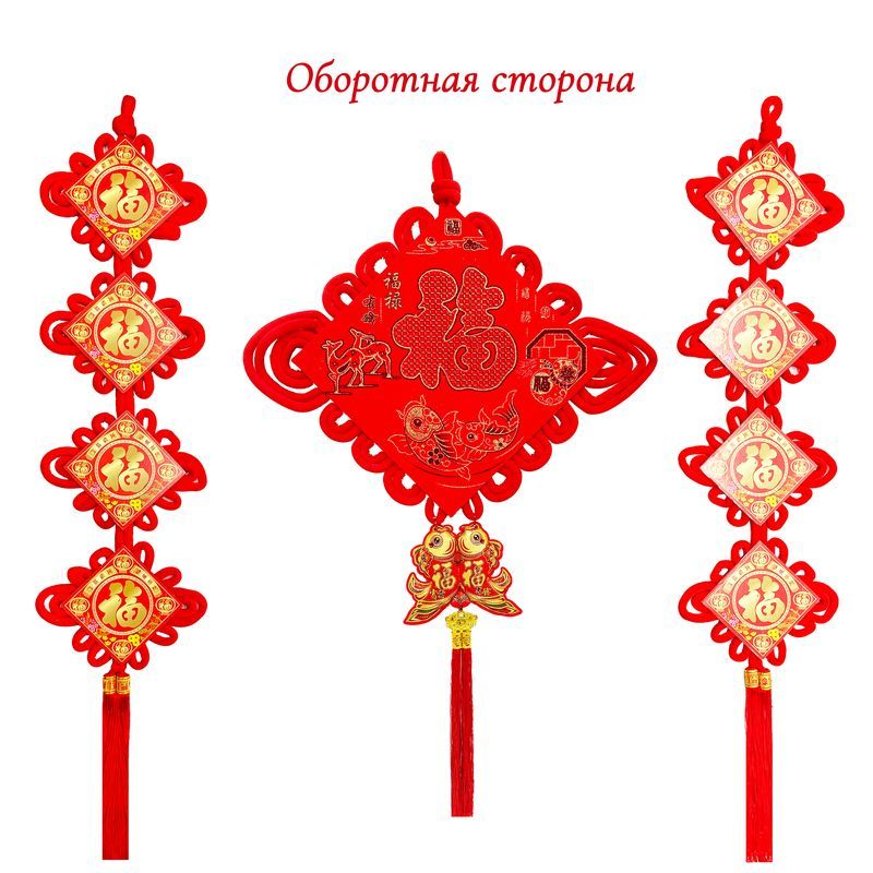 Китайский узел ромб красный НАБОР 2шт (68х112см + 23х112см) рыбки, Щедрость