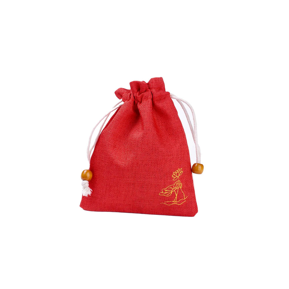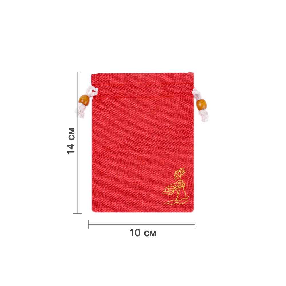 Мешочек из искусственного льна с орнаментом 10х14 см, красный