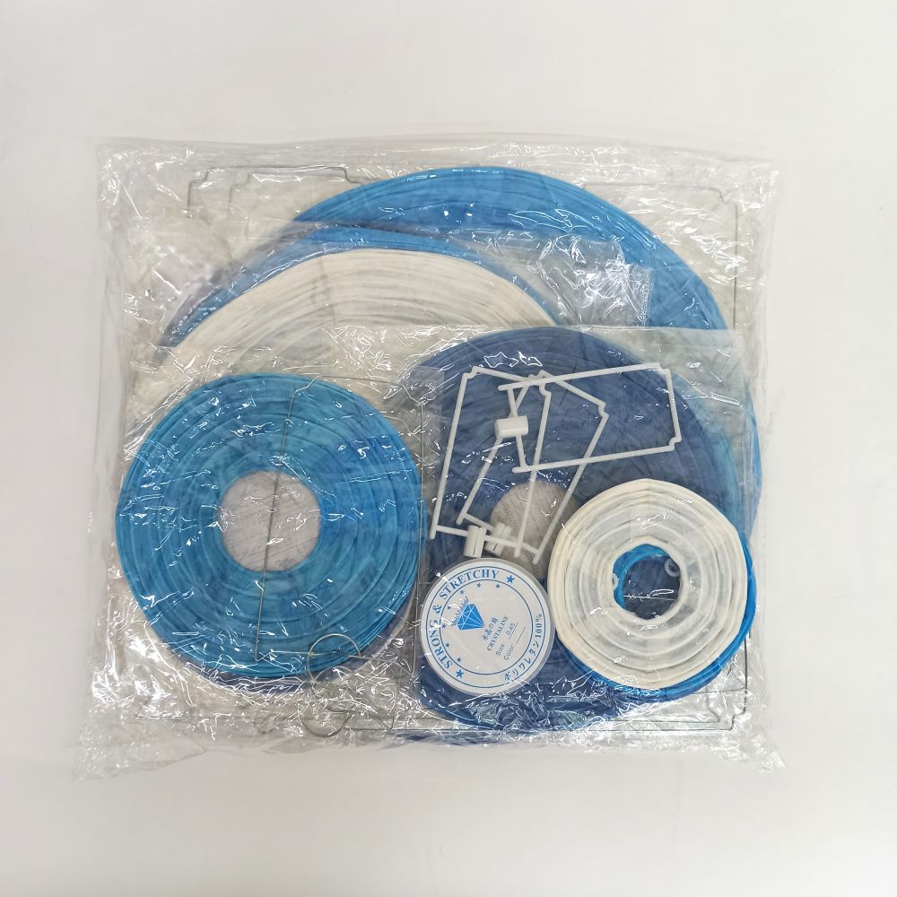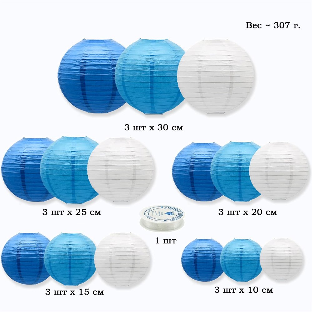 Набор подвесные фонарики 15 шт + леска, белый+синий+т.синий