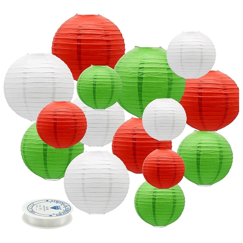 Набор подвесные фонарики 15 шт + леска, белый+зеленый+красный