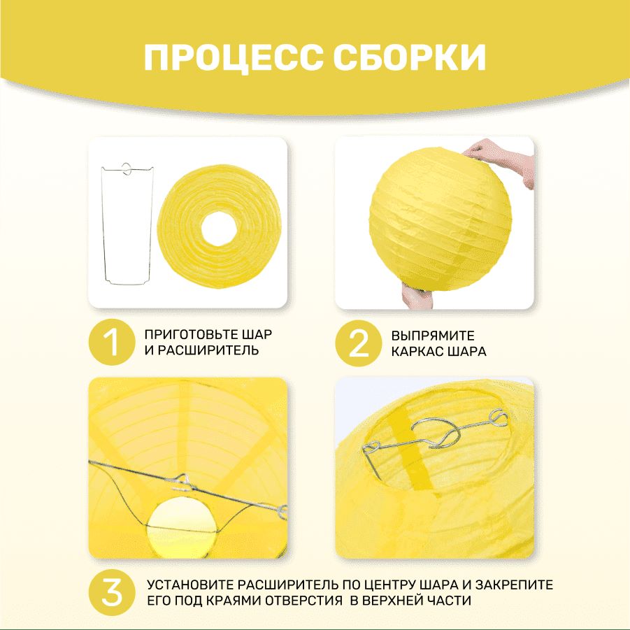 В комплект входит 8 бумажных фонариков и лента.