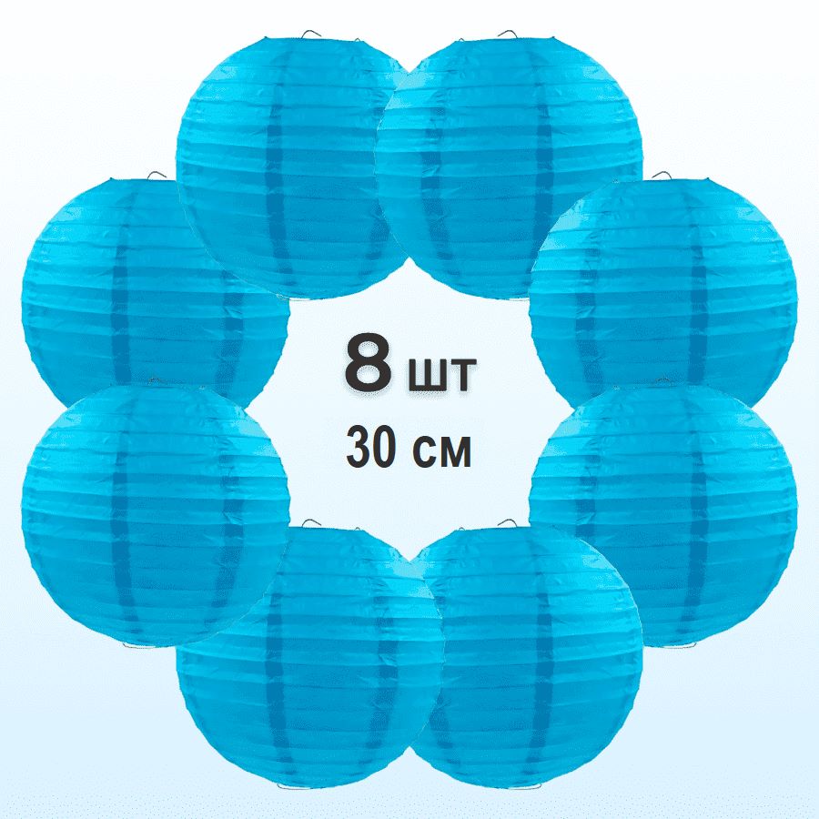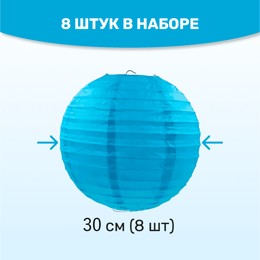 Комплект подвесные фонарики 30 см х 8 шт, синий