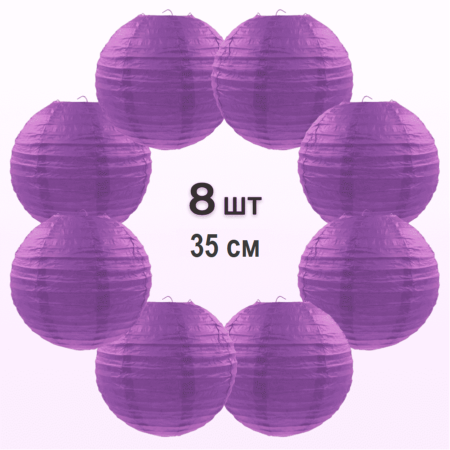 Комплект подвесные фонарики 35 см х 8 шт, сиреневый