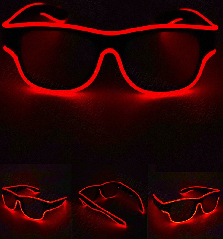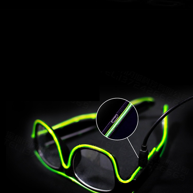 Светодиодные очки имеют прозрачную оправу, прозрачные линзы. Работают от встроенного аккумулятора, зарядка от USB.