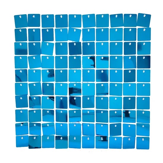 Панель с пайетками 30×30 см на гибкой пластиковой основе. Пластик прочный, хорошо гнётся и не ломается при сгибании. Пайетки переливаются при движении. Панель крепится к стенам, каркасам или соединяется с другими такими же панелями.
