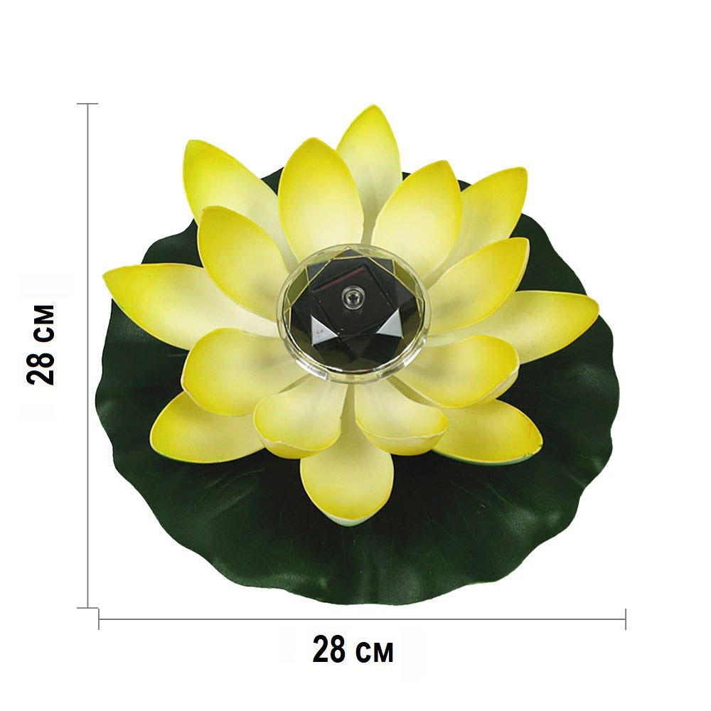 Плавающая Кувшинка с солнечной батареей 28х28 см лимонный