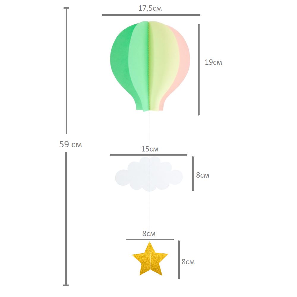 Подвеска Воздушный шар 59 см, айвори+св.розовый+св.зеленый