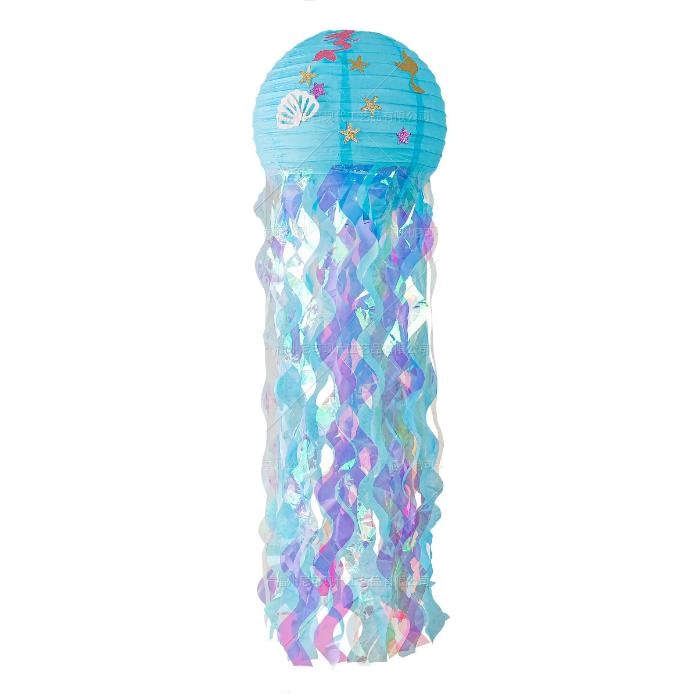 Подвесной фонарик Медуза с рис. 30 х 90 см, голубой