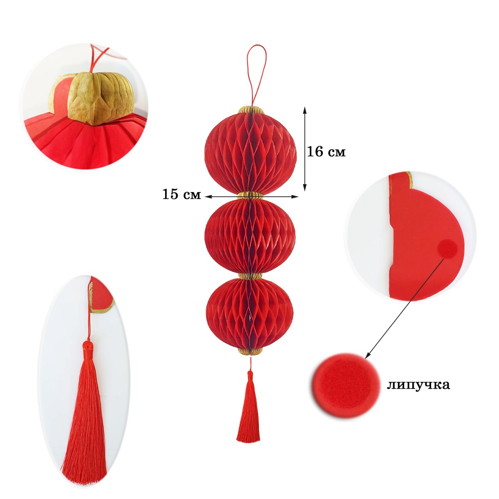 Подвесной фонарик соты бумажный 3 яруса 16х15х63см