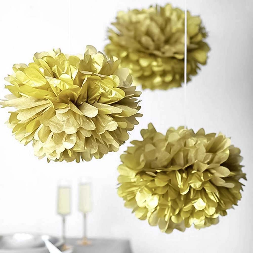 Золотой бумажный помпон диаметром 20 см — стильное и лёгкое украшение для праздников, фотозон, витрин и интерьера. Отлично подойдёт для дней рождений, свадеб, вечеринок и тематических мероприятий.