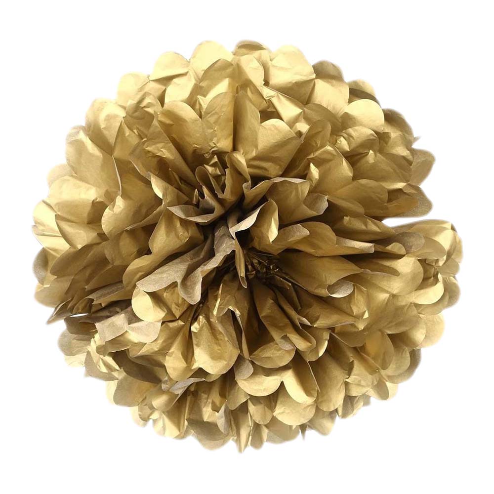 Золотой бумажный помпон диаметром 30 см — стильное и лёгкое украшение для праздников, фотозон, витрин и интерьера. Отлично подойдёт для дней рождений, свадеб, вечеринок и тематических мероприятий.