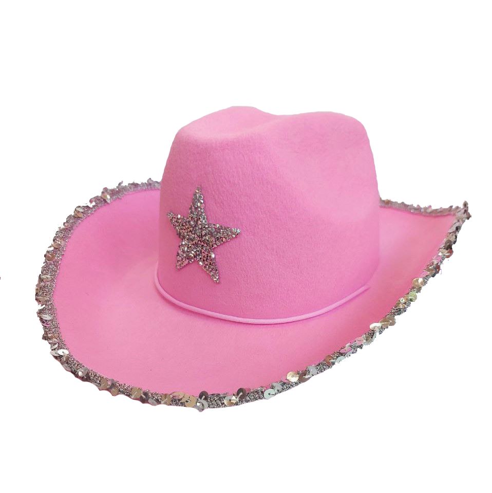 Шляпа ковбойская с блестками и звездой сделана из фетра.
