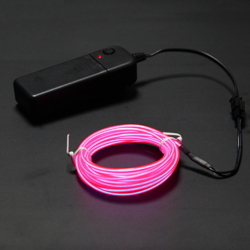В комплекте с EL проводом, длинной 3 метра,  идет бокс с питанием от батареек, что позволяет его применять где угодно, даже на улице.  Работает от 2-х батареек 2АА (батареек в комплекте нет).