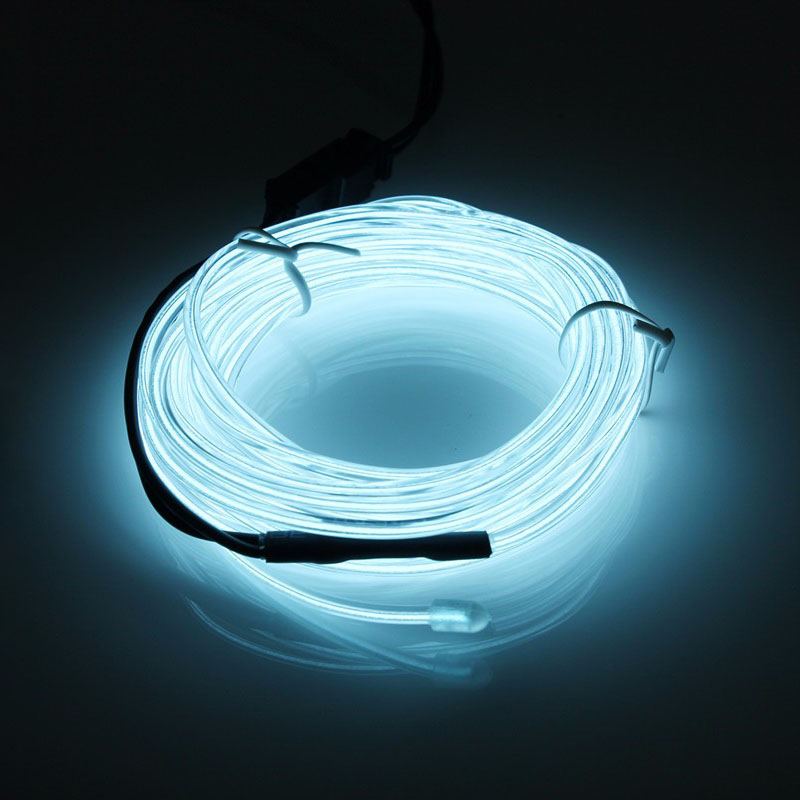 В комплекте с EL проводом, длинной 5 метра,  идет бокс с питанием от батареек, что позволяет его применять где угодно, даже на улице.  Работает от 2-х батареек 2АА (батареек в комплекте нет).