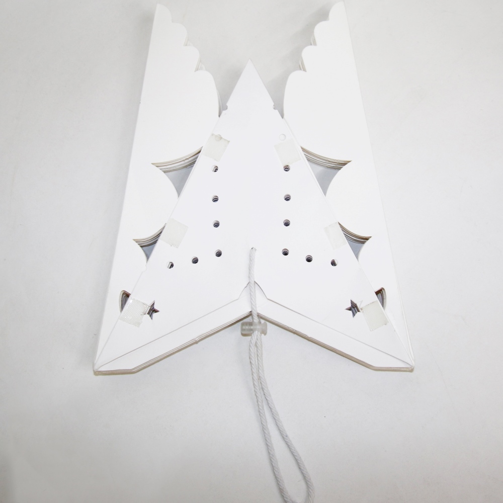 Снежинка на липучках размером 45 см, белого цвета, изготовлена из высококачественной бумаги.