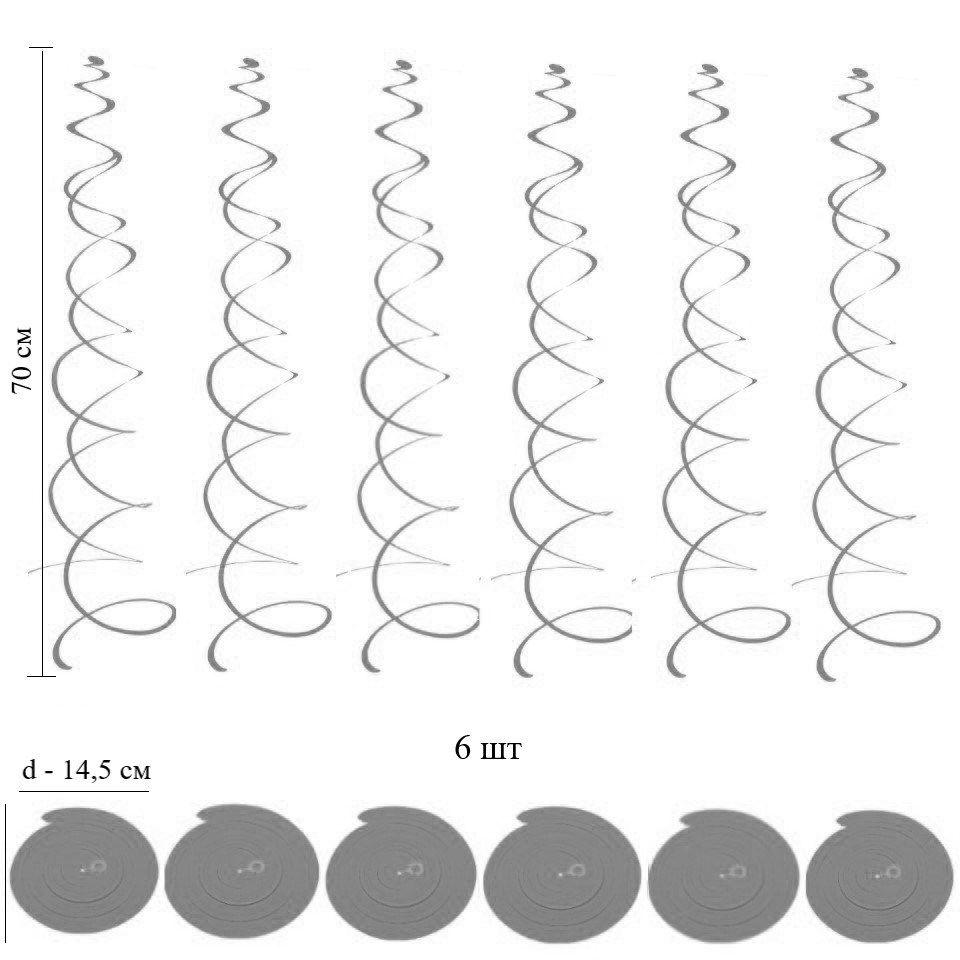 В комплекте 6 шт, каждая спираль снабжена петлей для крепления к потолку или стене.