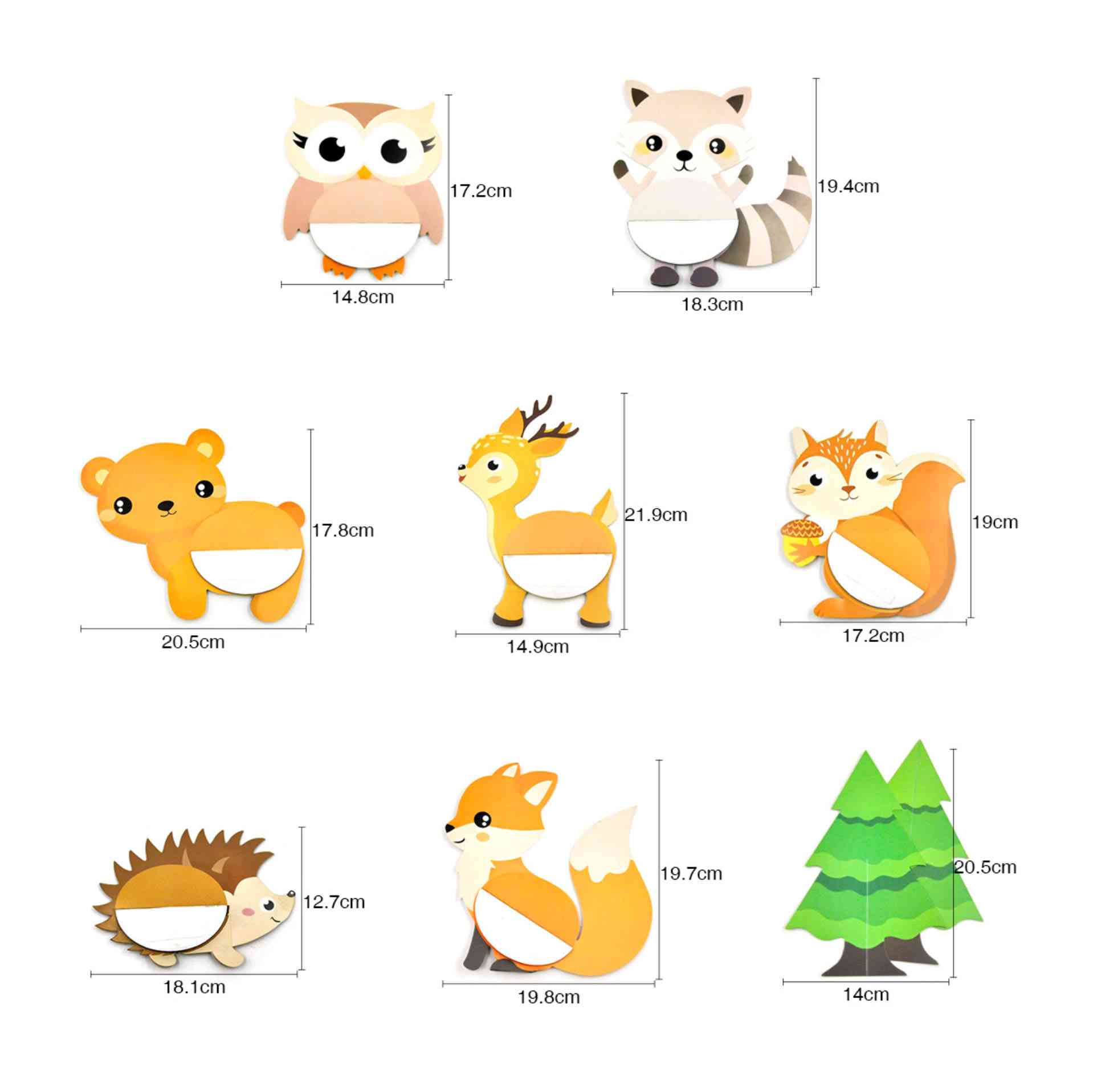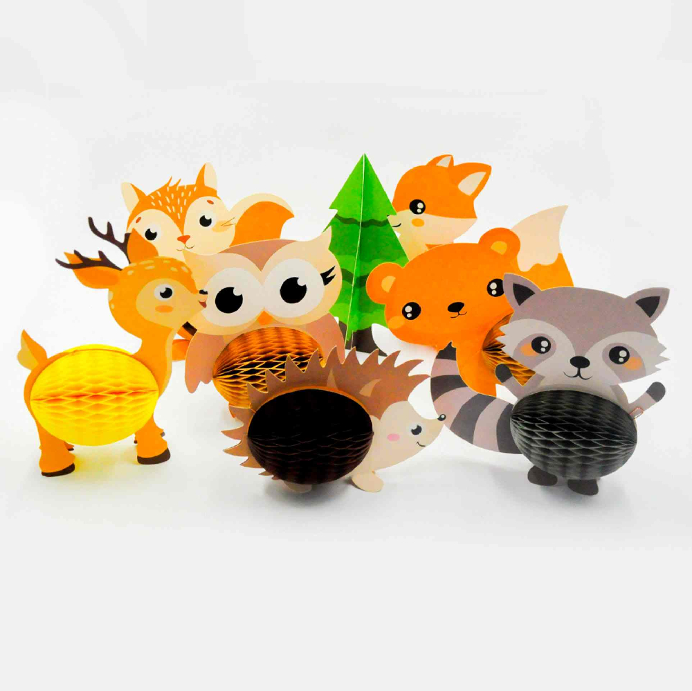 Стоячие сотовые украшения «Лес» — красочный набор декоративных фигурок с лесными животными, который создаст атмосферу уюта и сказки на детском празднике. Украшения отлично подойдут для оформления стола, фотозоны или игровой зоны.