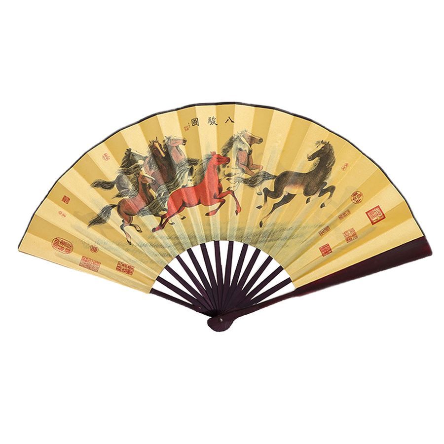 Двухсторонний складной веер для танца. Выполнен из бамбука и плотной ткани.