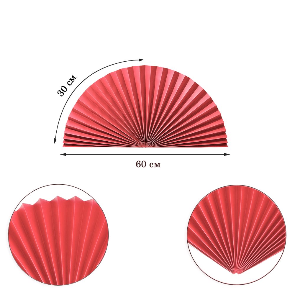 Веер-гармошка 160г/м 60 см, алый