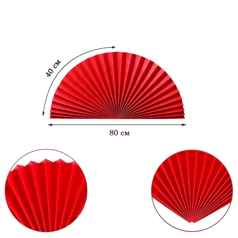 Веер-гармошка 160г/м 80 см, красный