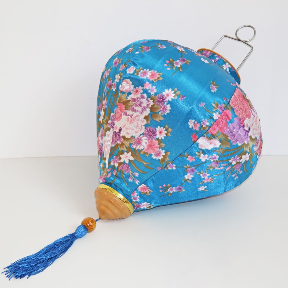 Это традиционные подвесные фонарики ручной работы, изготовленные из шелкового материала с элегантным цветочным узором, которые делают его изысканным и красивым.