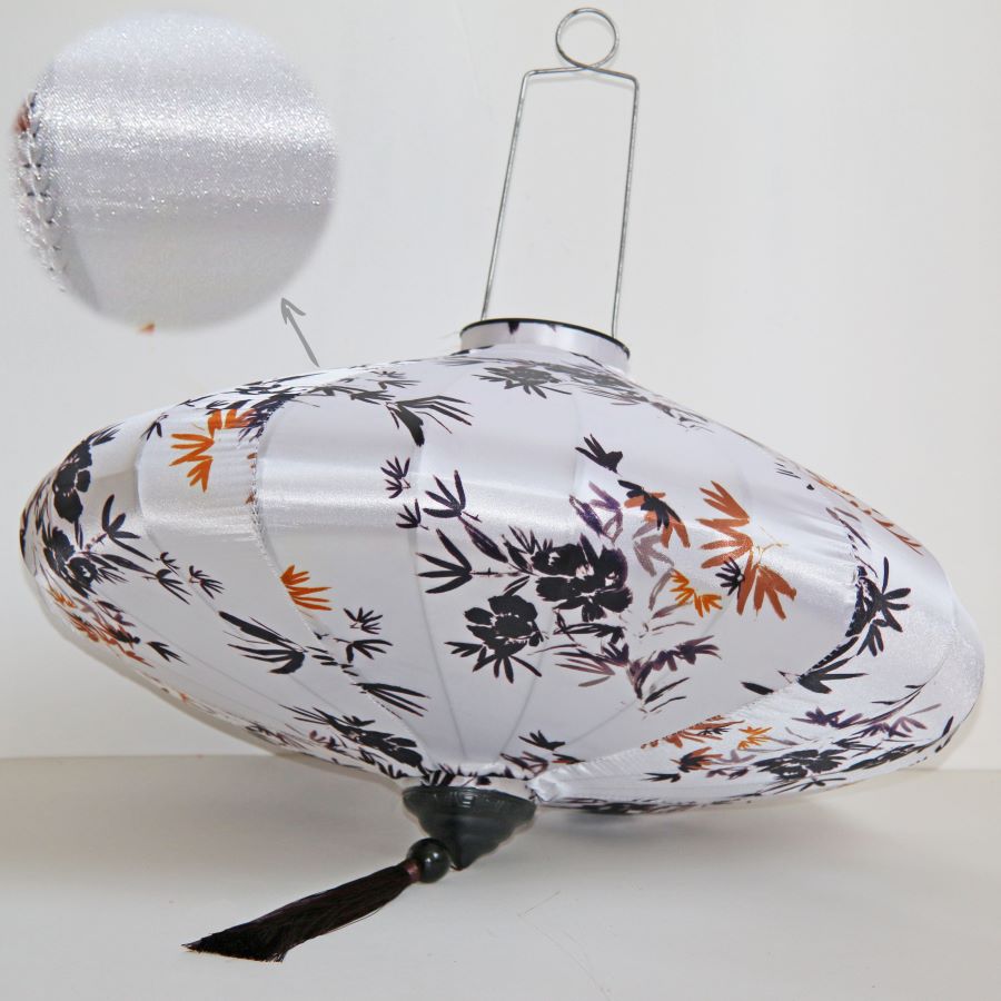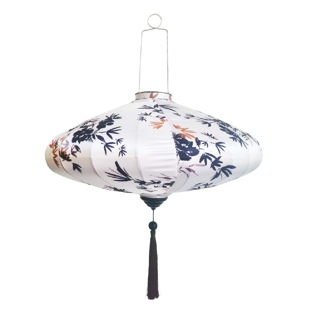 Коллекция подвесных фонарей ручной работы. Конструкция из шелкового полотна с цветочным орнаментом, металлического каркаса и подвесной системы. Модель в белой  цветовой гамме.