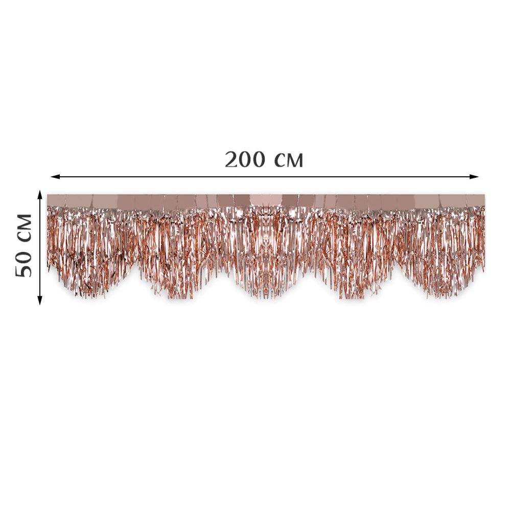Занавес Дождик бахрома 50 см х 2 м, металлик розовое золото