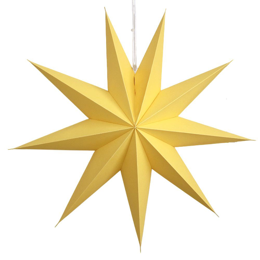 Объёмная девятиконечная звезда 60 см — декоративный элемент для интерьера и праздничного оформления. Лёгкая интерьерная звезда из картона хорошо держит форму и создаёт выразительный объём. Поставляется в сложенном виде, в комплекте шнур для фиксации объёма и подвеса.