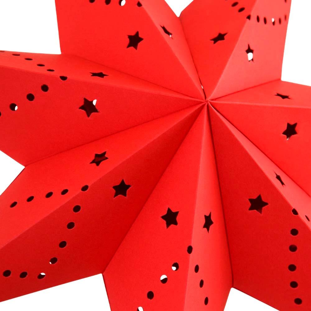 Аккуратно расправьте лучи, чтобы придать звезде идеальную объемную форму, затем зафиксируйте встроенным шнуром для подвеса.