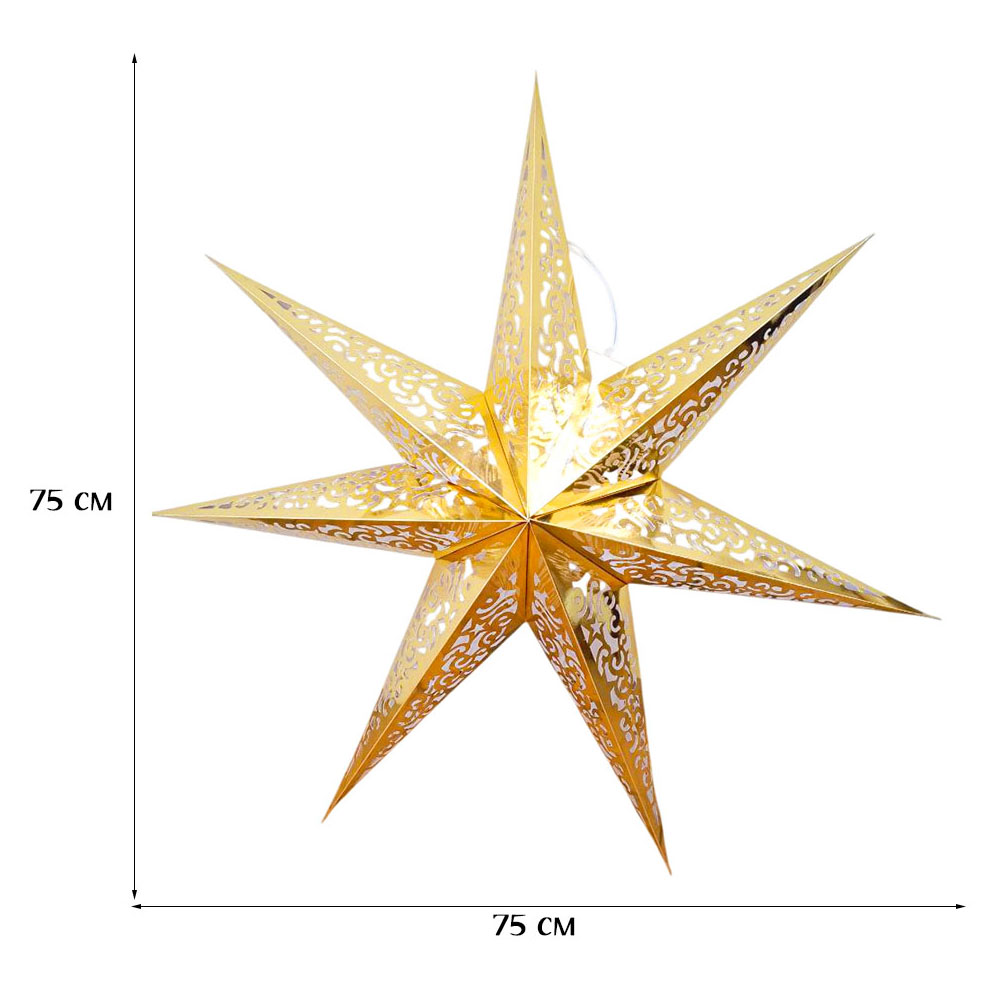 Звезда семиконечная бумажная 75 см Вензель, золото