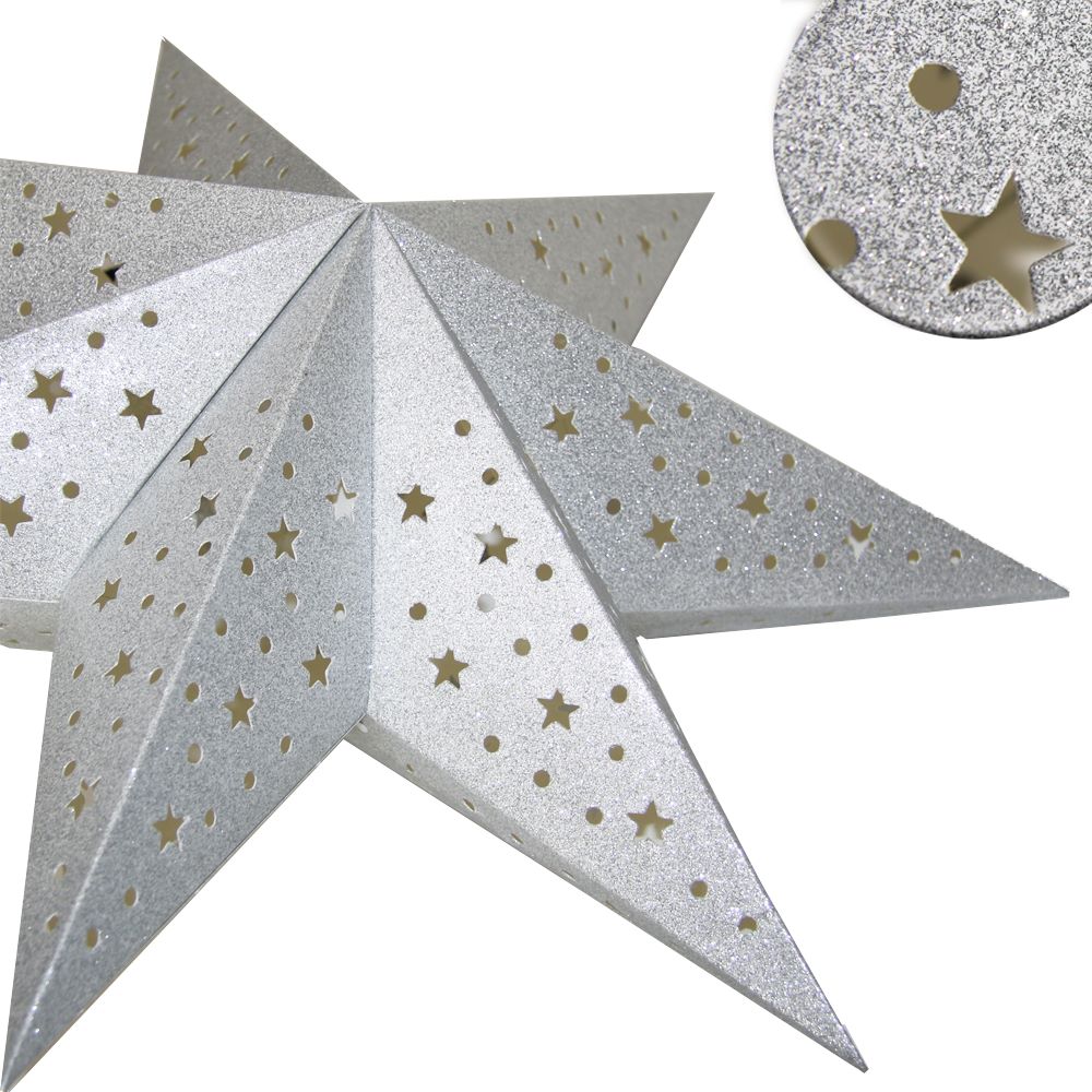 Звезда семиконечная бумажная блеск 45 см, точки и звездочки, серебро